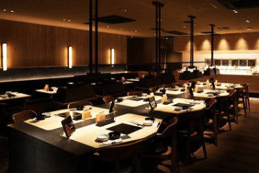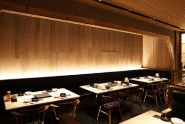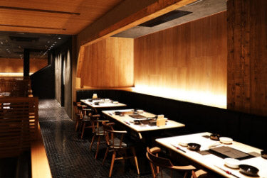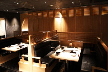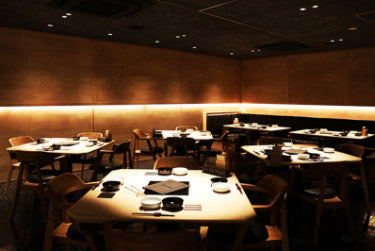 新宿東口店のインテリアは、温かみのある木材を基調に、塗り壁や水墨画で日本の伝統的な「和」の雰囲気を醸し出しています。 エントランスには庭園が設けられ、開放感のある空間にてお客様をお迎えいたします。3階フロア中央に置かれた牛のオブジェと各フロアに設置されている「野菜ブッフェコーナー」が「彩」を演出。 4階は2〜4名様利用に最適なお席になっており、2名様だと隣り合わせで座る新しいタイプのテーブル席になっています。3階はレイアウトがフレキシブルに組め、団体様に、より快適にご利用いただけるスペースになっています。