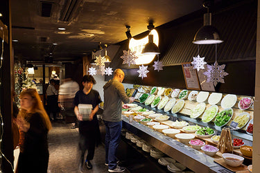 池袋サンシャイン60通り店、各種口コミサイトで高い評価を得ているしゃぶしゃぶ・すき焼き専門店です。鍋具材としてご利用いただくブッフェコーナー「野菜市場」を中心に、少人数から大人数まで、幅広い利用に最適なレイアウトとなっています。最大54名様までご利用可能な宴会スペースもご用意します。